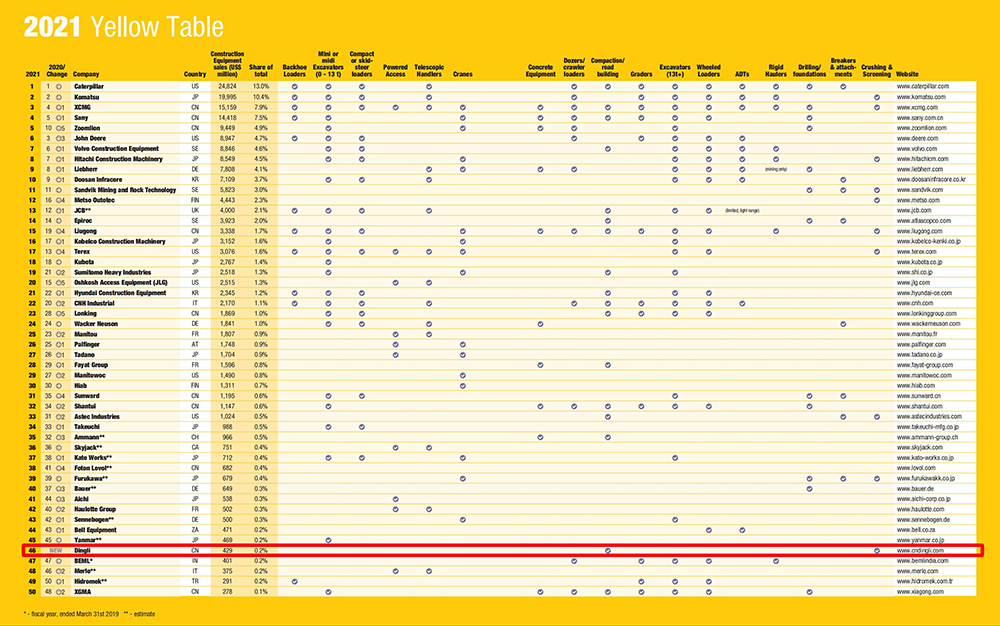On May 11, THE world's leading construction machinery information provider -- UK KHL Group released the Yellow Table 2021 Top 50 Global Construction machinery Manufacturers . As one of the most authoritative, objective and fair rankings globally, Zhejiang Dingli was listed for the first time by aerial working platform, ranking 46th.