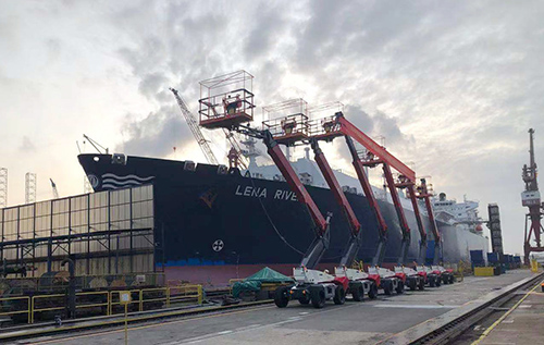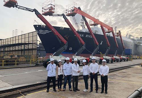 Off to a good start! The first batch of the new boom lifts delivery ceremony of Keppel Sea Scan in Singapore is held ceremoniously!