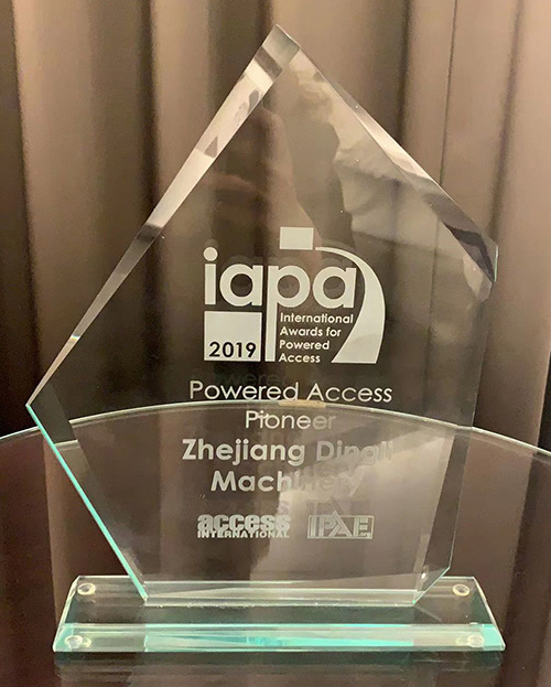 Zhejiang Dingli,who won the the international award for"IPAF-2018 Powered Access Pioneer ", which was the first time for Chinese manufacturers of aerial work equipment to win the honor, achieving the zero breakthrough of “made in China” in this award! This was the highest honor that Chinese manufacturers of aerial work platform have won in this award so far.