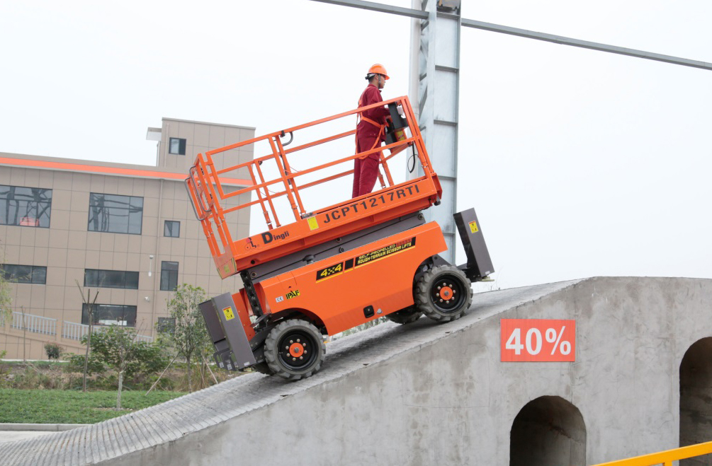 In order to meet the operation demands of various complicated working conditions and enhance the work efficiency of the operator, the technical team of Zhejiang Dingli solves a series of technical problems, successfully completes technical upgrading of whole series of the off-road forked type aerial work platform and passes the strict test of complicated working conditions.